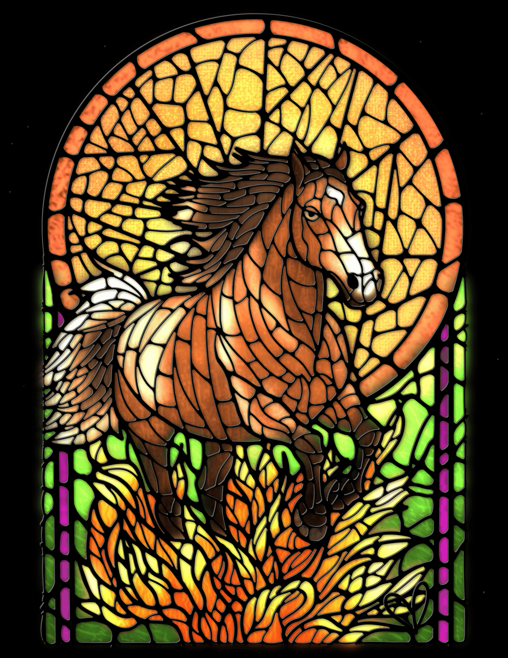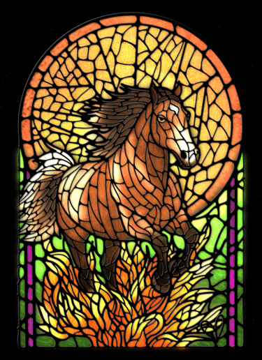 In that sacred stillness of meditation, as I breathed into the unknown of 2026, a vision ignited. A majestic wild horse at the edge of an endless field, her coat shimmering like stained glass under dawn light. She stood heavy with chains of old doubts, tangled vines of societal expectations, and the quiet exhaustion of wearing masks for approval. Then, with a fierce shake, she shed it all: silence armored in fear, colors hidden behind borrowed eyes, the weight of performing instead of being. Unburdened, naked as birth, she thundered into freedom, wind in her mane, earth trembling beneath untamed hooves. This stained glass artwork and poem capture her fire, echoing the Year of the Fiery Horse: pure reclamation, my ritual for us all.